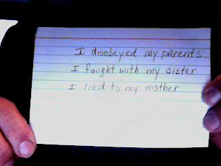 “No, I am teaching my little second graders about confession, so I made up those sins so they can practice.” Sure she had to imagine them, I have to recall them!